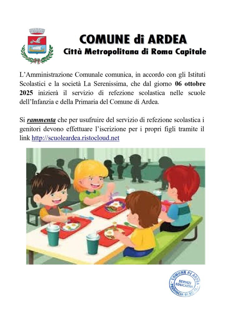 Dal 6 ottobre 2025 inizia il servizio di refezione scolastica